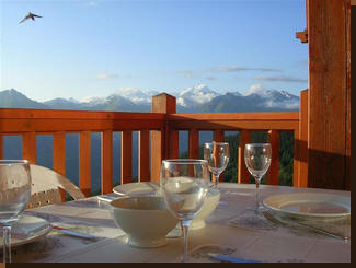 Balcon avec la vue sur la vallée et le mont blanc,